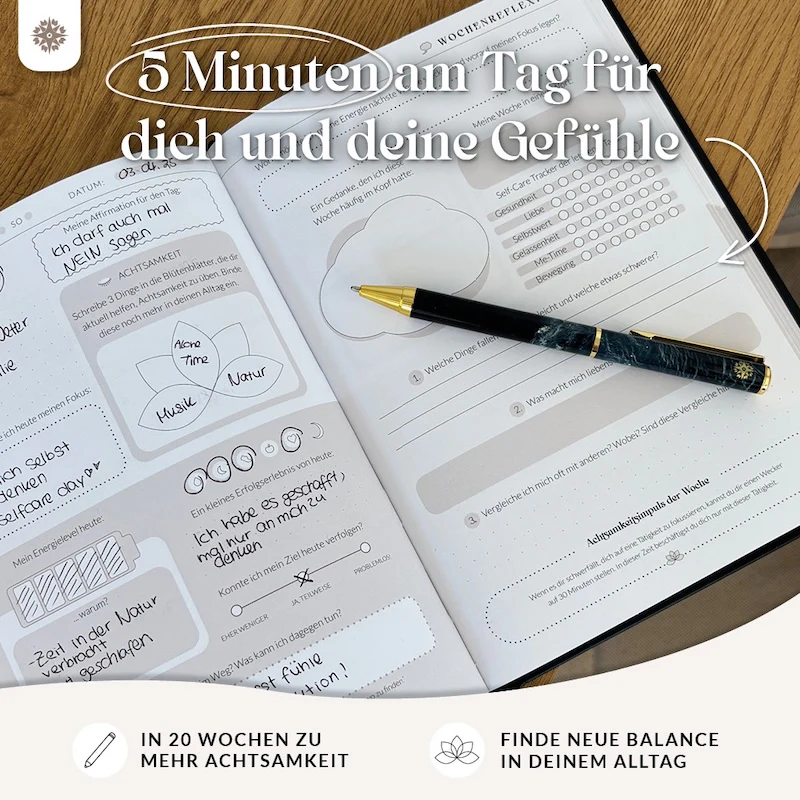 - Undatiertes 5 Minuten Achtsamkeitstagebuch für 20 Wochen