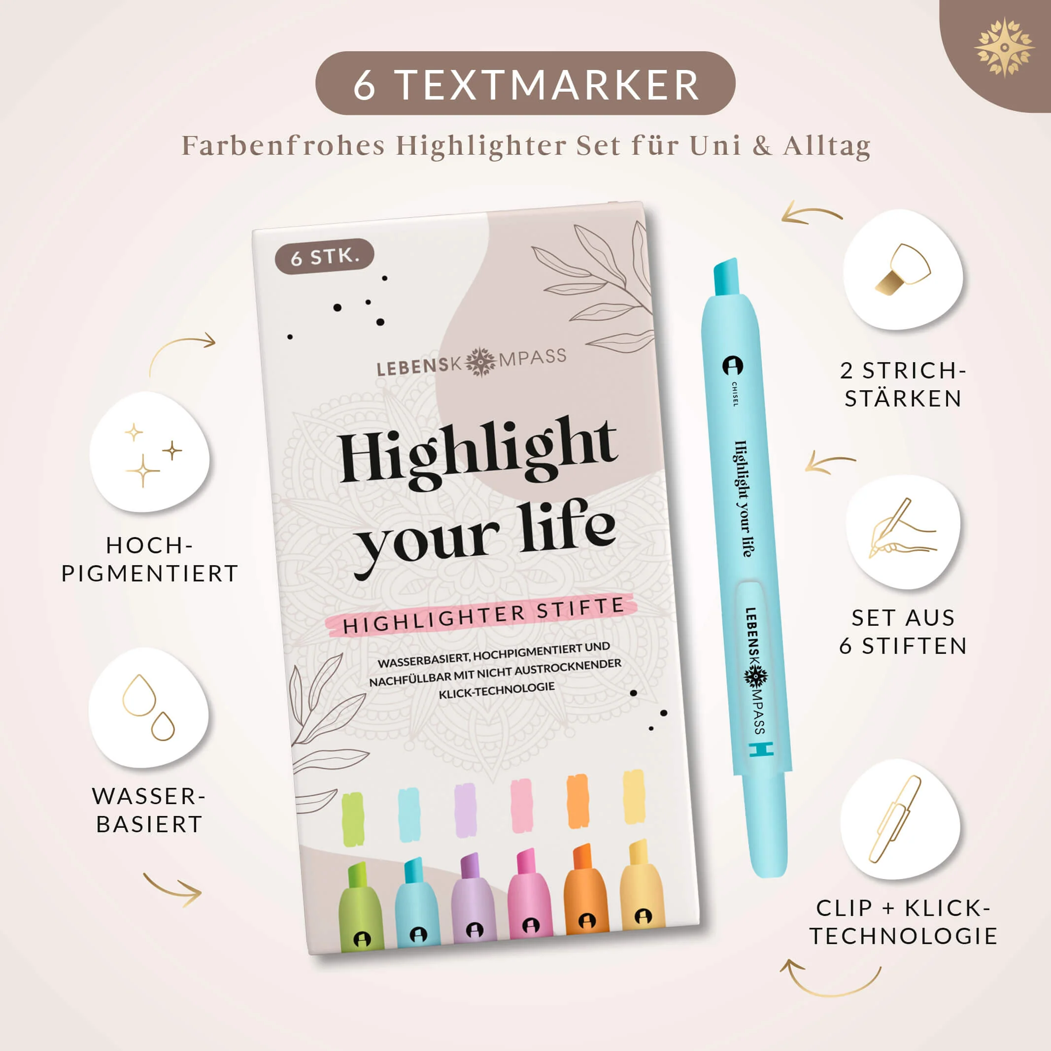 -70%Textmarker Stifte - 6er Set Highlighter—